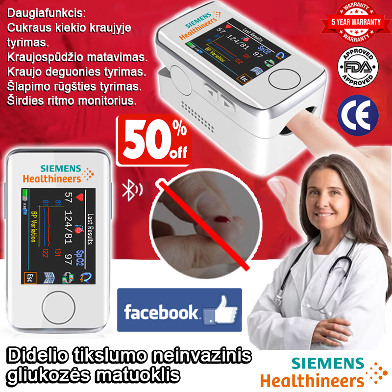 Siemens neinvazinis daugiafunkcis gliukozės kiekio kraujyje matuoklis (10 metų garantija) (tikslus
