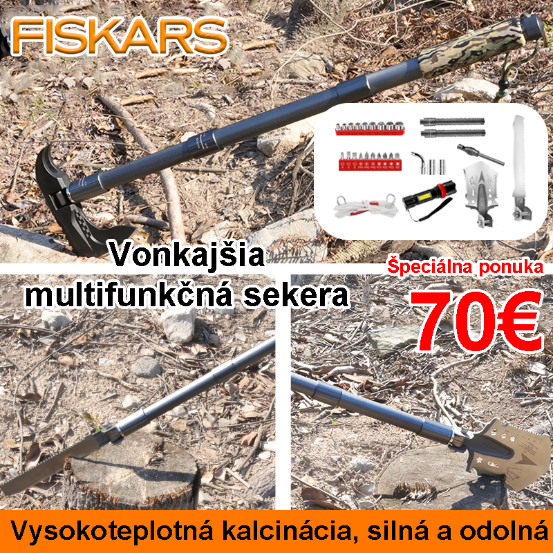 Multifunkčná sekera Fiskars (kalcinovaná pri vysokej teplote, schopná násilných operácií)