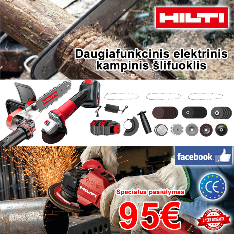 Hilti daugiafunkcis grandininis pjūklas (nauja kampinio šlifuoklio funkcija)