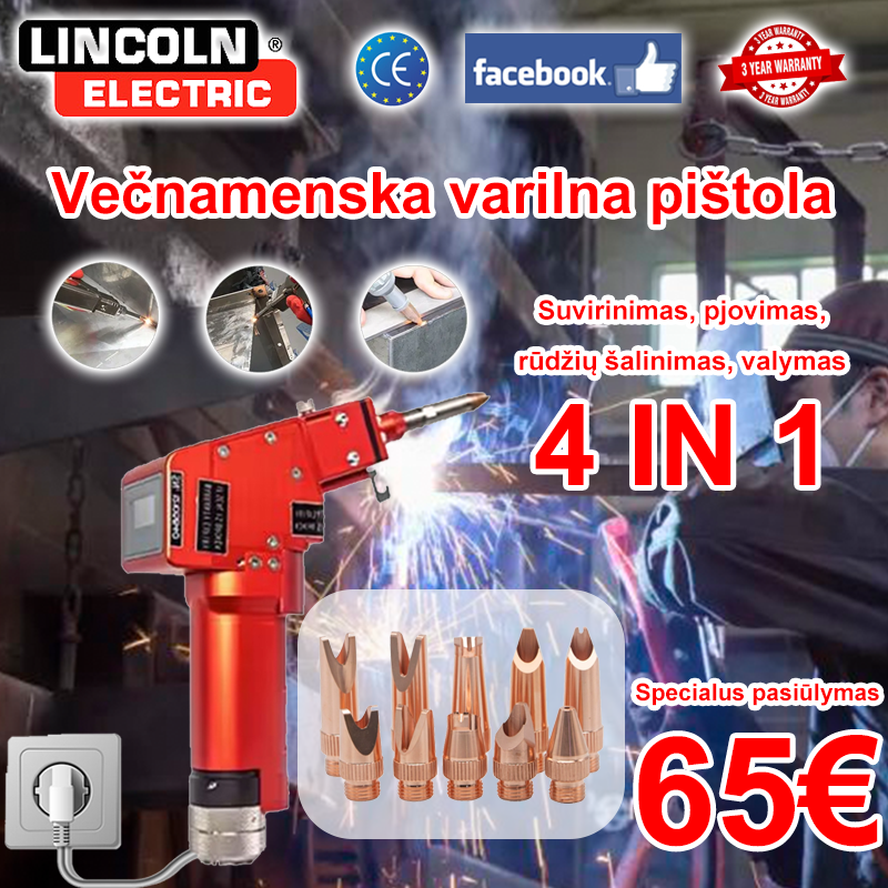 Lincoln suvirinimo pistoleto suvirinimas, pjovimas, rūdžių šalinimas, valymas (keturi viename)