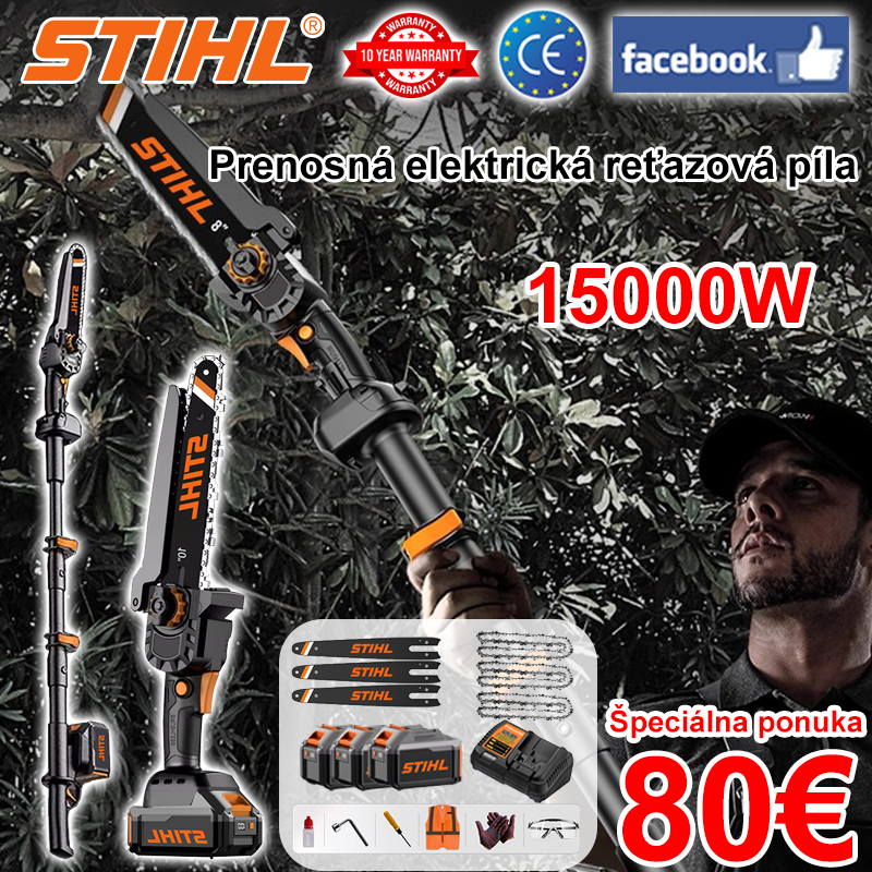 Bezuhlíková lítiová akumulátorová reťazová píla STIHL 15000W s 10-palcovou teleskopickou tyčou