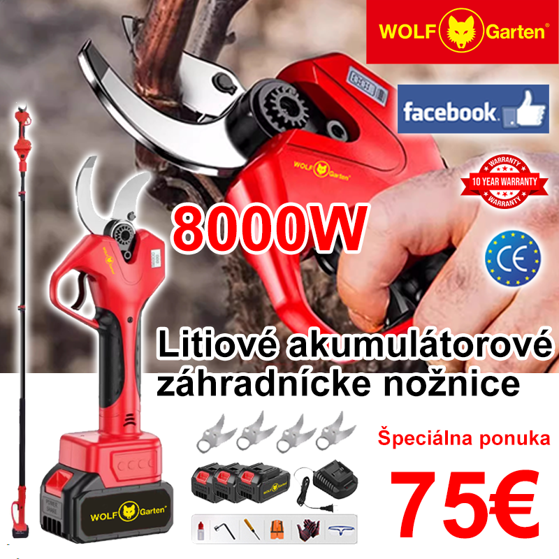 Litiové záhradnícke nožnice WOLF-Garten s 8000 W lítiovou batériou a teleskopickou tyčou