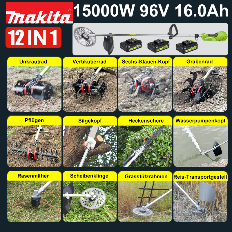 【12 en 1】Cultivador portátil con batería de litio multifuncional Makita