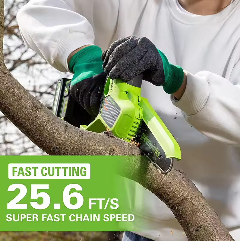 Nová elektrická reťazová píla Greenworks je v predaji, aby vyriešila vyššie uvedené problémy a jednoducho dokončila úlohy rezania.