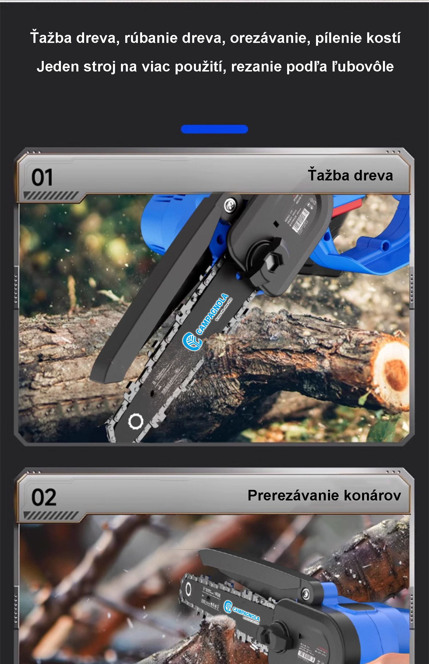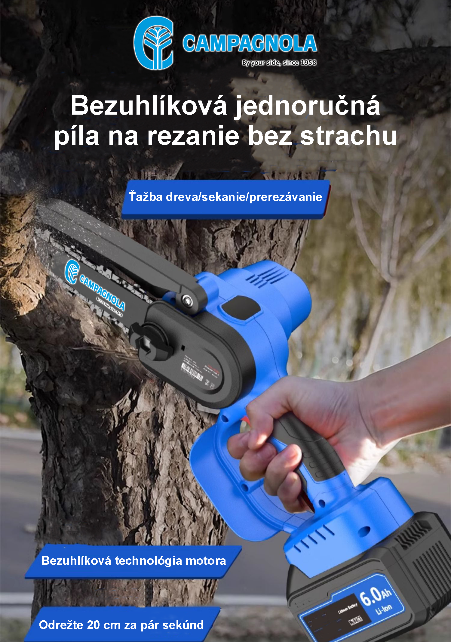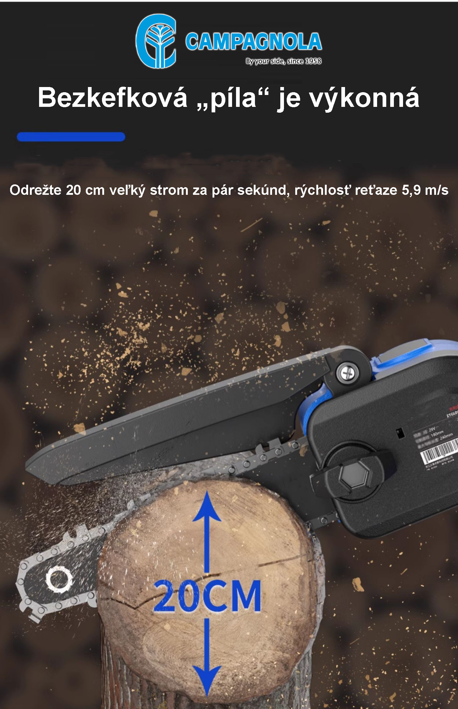 Nový produkt na predaj lítiové akumulátorové reťazové píly Campanola, výkonné a efektívne, vysoká účinnosť rezania