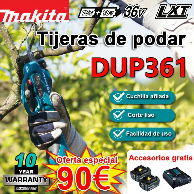 Equipado con una pértiga telescópica para facilitar la poda de ramas altas.