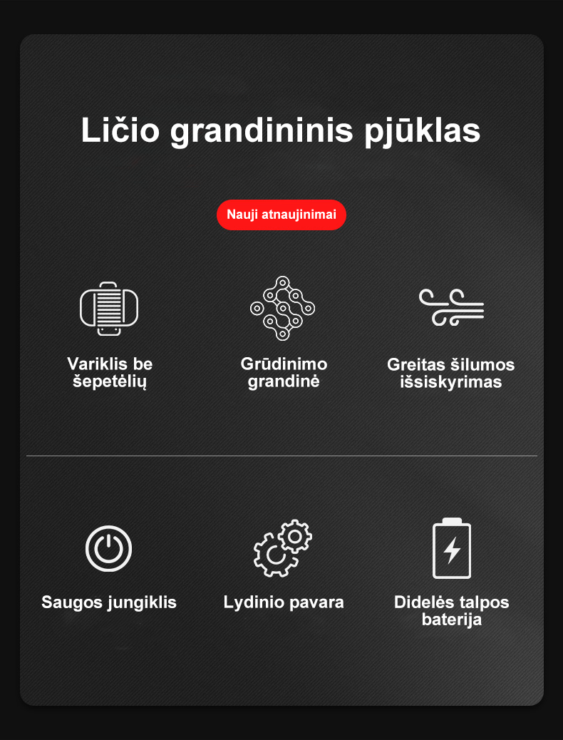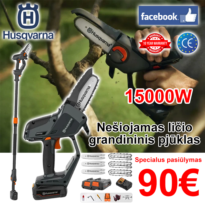 Švęsdami naujojo Husqvarna ličio jonų grandininio pjūklo pristatymą, visi „Facebook“ vartotojai dabar gali mėgautis nuolaida pirkiniams. Pradinė kaina 190 €, dabar 90 €, liko 31 egz.