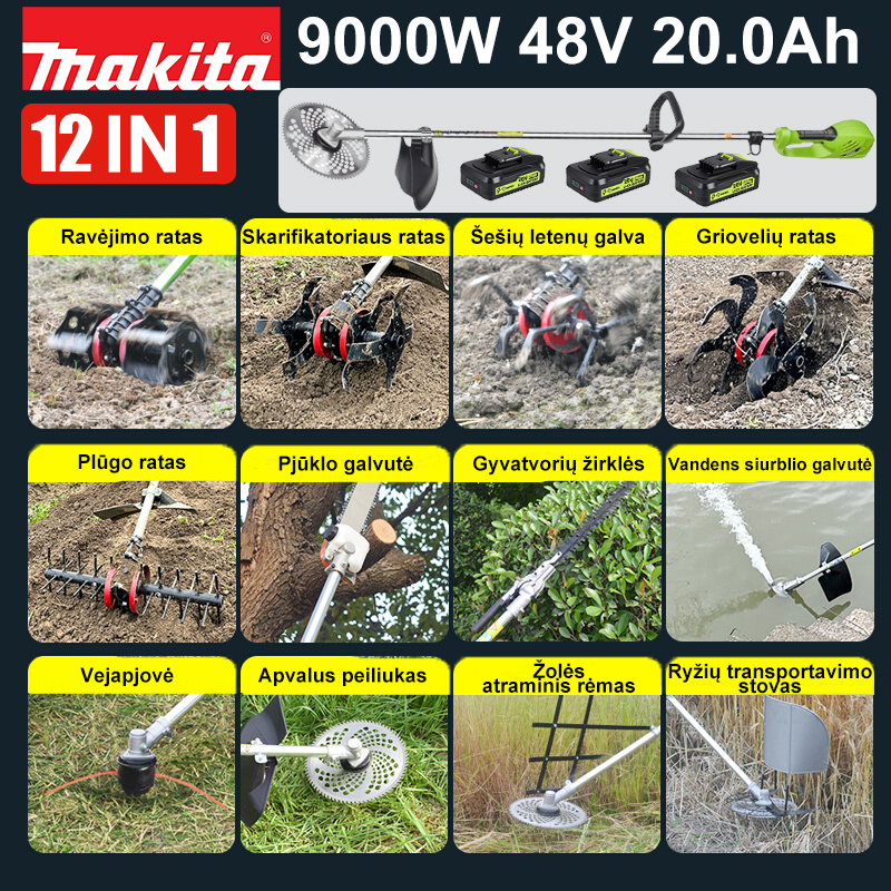 Daugiafunkcinė vejapjovė su 9000 W galia.
